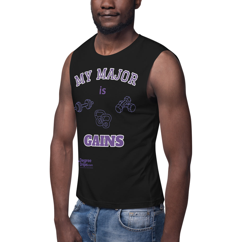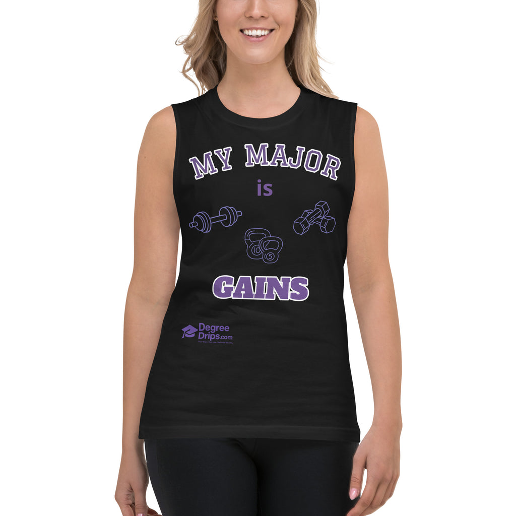 Get ready to flex both your muscles and your college spirit with our βMy Major is GAINSβ Sleeveless T-shirt! ππ₯ Perfect for students who hit the gym harder than the books (just kiddingβ¦ kinda), this tee is a fun and bold way to show off your dedication to fitness while repping your college grind.