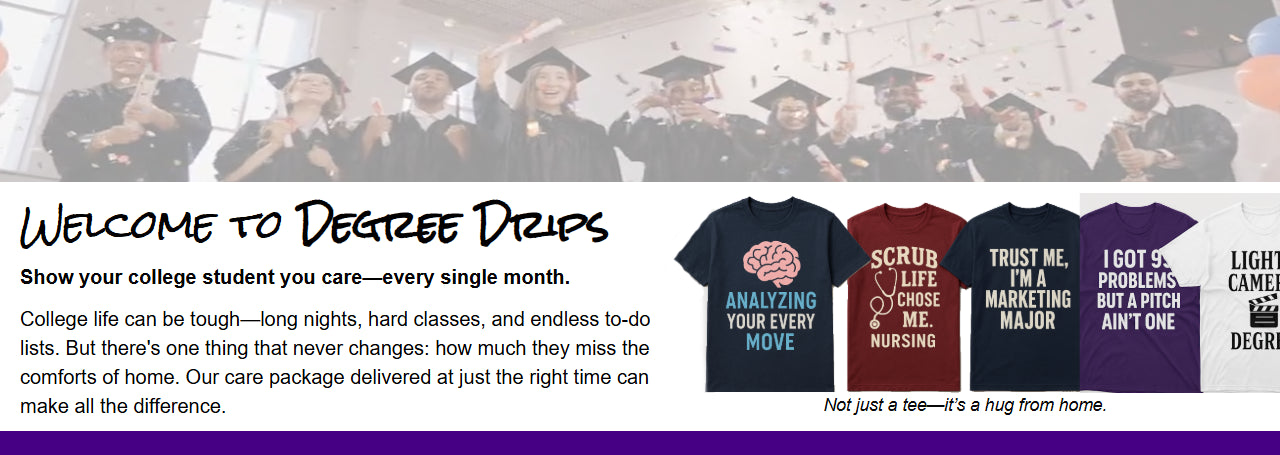 The Degree Drips Semester Care Package is the perfect way to support and celebrate your college student all semester long.